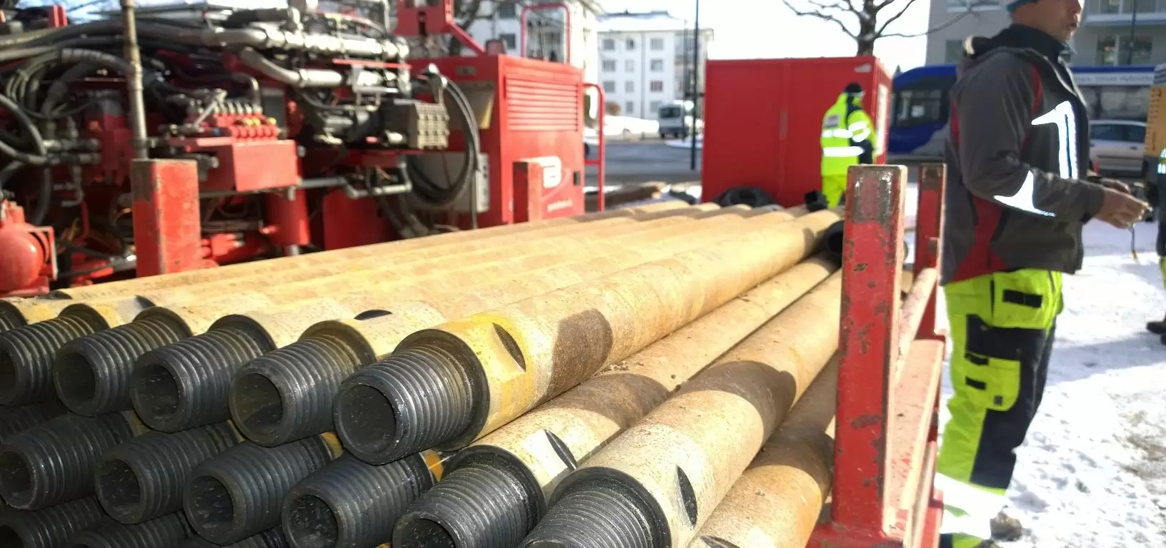 During the construction of a geothermal heating, you drill a 50 to 400 m deep hole. You have to go that deep because down there there are no seasonal weather and temperature changes. The diameter of the hole can be up to 160 mm. In general, there are two pressure-resistant plastic pipes. A heating fluid circulates through the two tubes, the fluid is heated in the bottom of the tubes and the heat is transfered to the house.